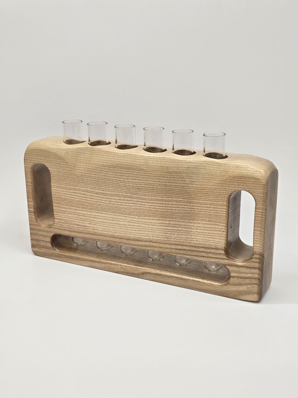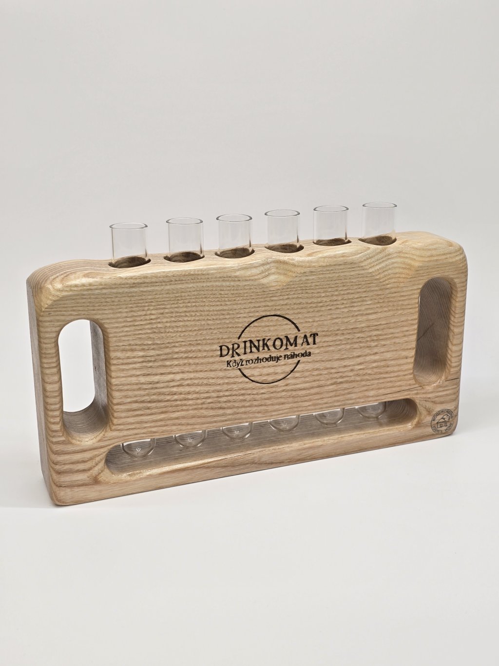 Objev Drinkomat, originální dřevěný držák na panáky, který promění večer v zábavnou a napínavou hru, a se kterým prožiješ vzrušení při každém drinku. Stačí naplnit zkumavky různou hladinou alkoholu a následně nech osud rozhodnout, kdo si vylosuje slabý drink a kdo pořádnou porci. Stylový a funkční doplněk pro každou party, oslavu, domácí bar i setkání s přáteli. Drinkomat je precizně zpracovaný dřevěný držák na panáky se šesti skleněnými zkumavkami od českého dodavatele. Spojení přírodního materiálu a čistého designu, které povýší servírování drinků na zážitek. Skvělý jako originální dárek, který zaručeně rozproudí zábavu, to je DRINKOMAT. Výzva pro odvážné.