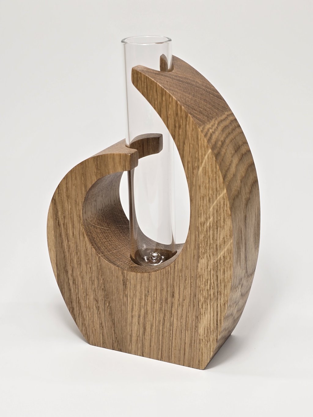 Objevte kouzlo přírody v podobě originální dubové vázy, která zaujme svou přirozenou krásou i precizním řemeslným zpracováním. Každá váza vzniká ruční výrobou z pečlivě vybraných dubových hranolků, takže v sobě nese unikátní kresbu i charakter – každá je originální a nezaměnitelná svým půvabem. Tento elegantní doplněk vnese do vašeho domova harmonii, teplo a styl, a zároveň potěší jako vkusný dárek pro vaše blízké.